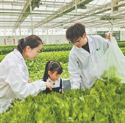 庫車市甬庫同心村智慧農(nóng)業(yè)植物工廠技術員帶領游客參觀。 王紅麗攝
