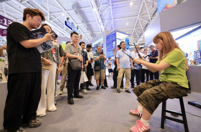 文化傳承同樣因AI煥發(fā)新生。日益精進(jìn)的裸眼3D技術(shù),將故宮、敦煌莫高窟等知名文物“帶進(jìn)”文博會?!爱a(chǎn)品的主要技術(shù)原理就是通過多角度采集畫面,把多張畫面疊加在一起,再通過屏上自研的光學(xué)材料折射出對應(yīng)角度錄制的畫面,從而形成裸眼即可觀看的3D立體效果?!闭橄窨萍技夹g(shù)支持程啟征表示,這是他第三年參加文博會,每次都會在現(xiàn)場有不少成交量?!案杏X今年觀眾更多,專業(yè)性也更強(qiáng)?!?/p>