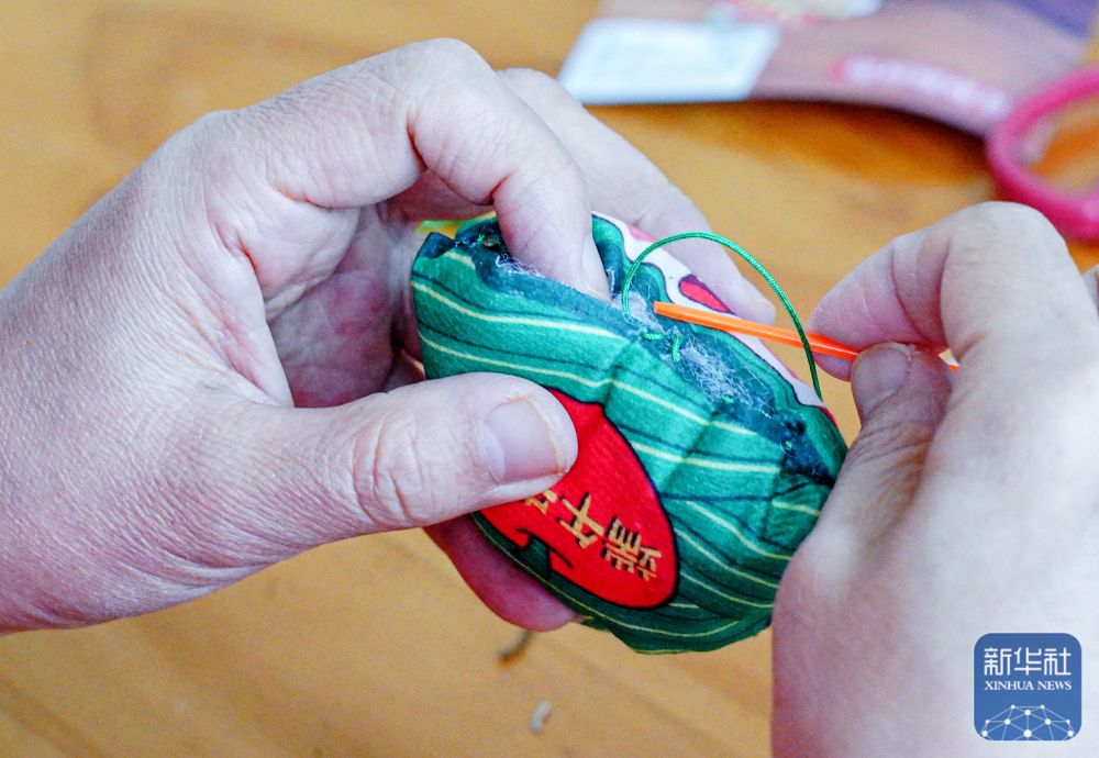 5月23日,志愿者在山東省榮成市新時代文明實踐中心制作香囊,準備送給孤寡老人。新華社發(fā)(李信君攝)