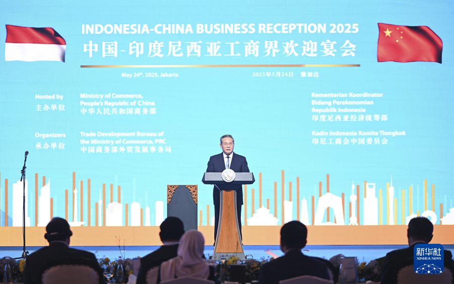 當(dāng)?shù)貢r(shí)間5月24日晚,國務(wù)院總理李強(qiáng)在雅加達(dá)同印度尼西亞總統(tǒng)普拉博沃共同出席中國-印尼工商界晚宴并致辭。新華社記者 李響 攝