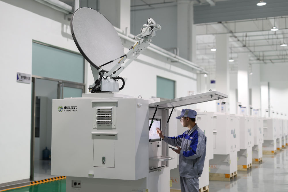 4月21日,工作人員在中科星云智造基地調(diào)試一款裝有衛(wèi)星天線的數(shù)據(jù)方艙產(chǎn)品。新華社記者 杜瀟逸 攝