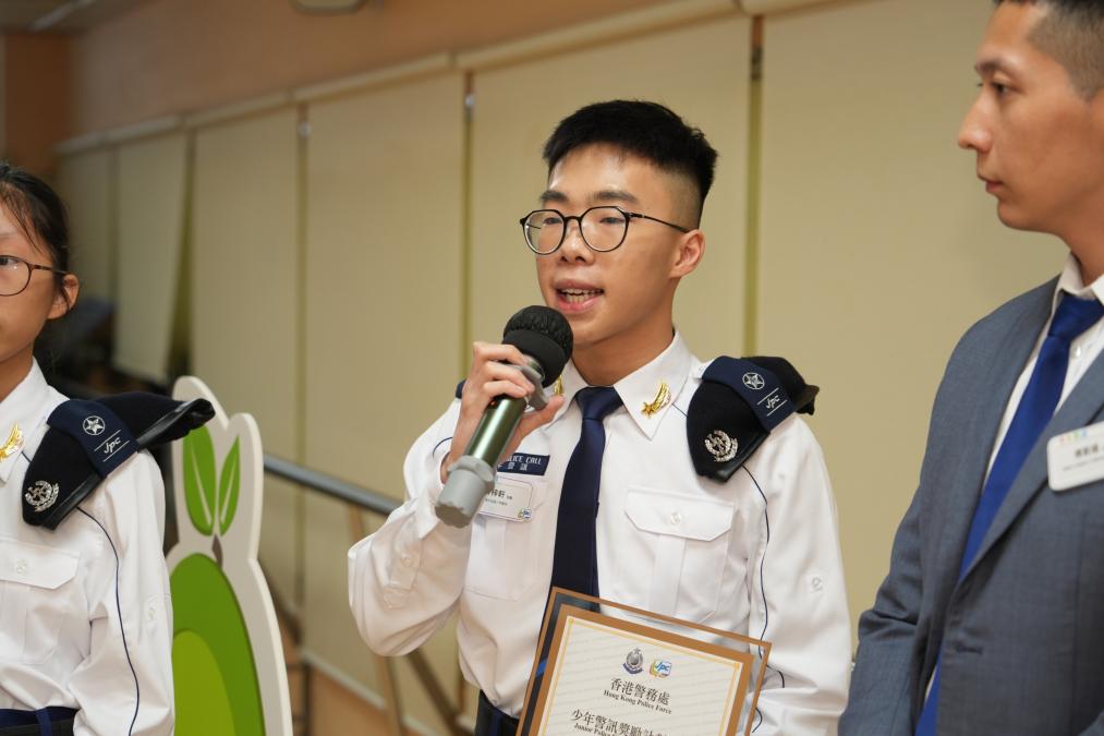 14歲的徐驊美是三位得獎?wù)咧凶钅贻p的一位,但她的經(jīng)歷絲毫不遜色。加入少訊僅兩年,她已晉升為荃灣區(qū)少訊資深領(lǐng)袖,統(tǒng)籌過“打騙荃城嘉年華”等大型滅罪宣傳活動,還以指揮員身份參與步操比賽,獲評“優(yōu)秀隊(duì)員”。