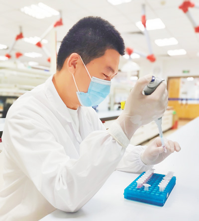 聶龍宇在提取細胞核酸標(biāo)本。東陽光藥業(yè)供圖
