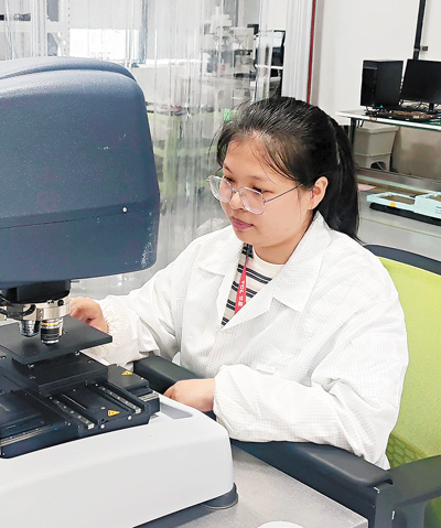 胡素娟利用白光干涉儀測試膜層。姚文碩攝