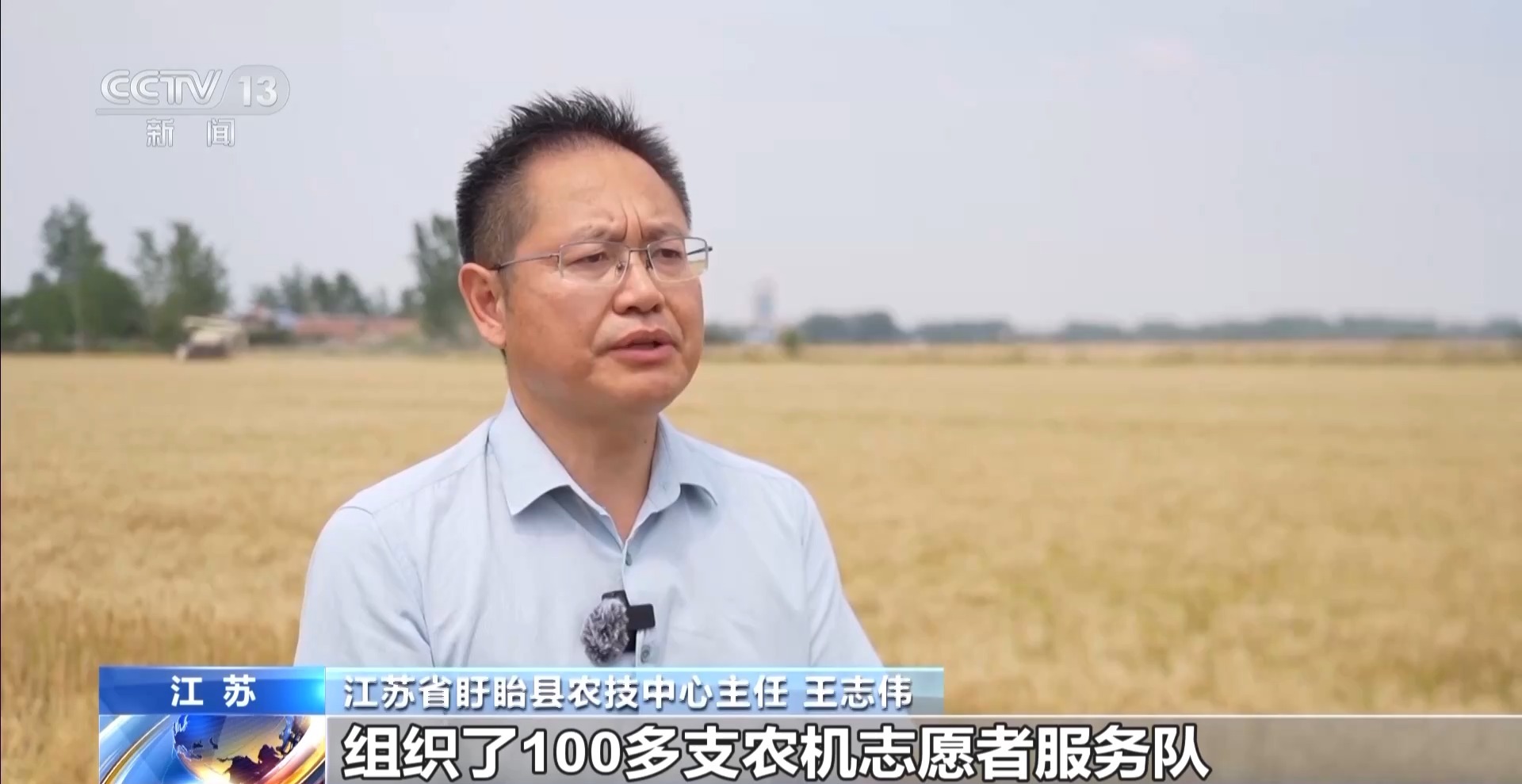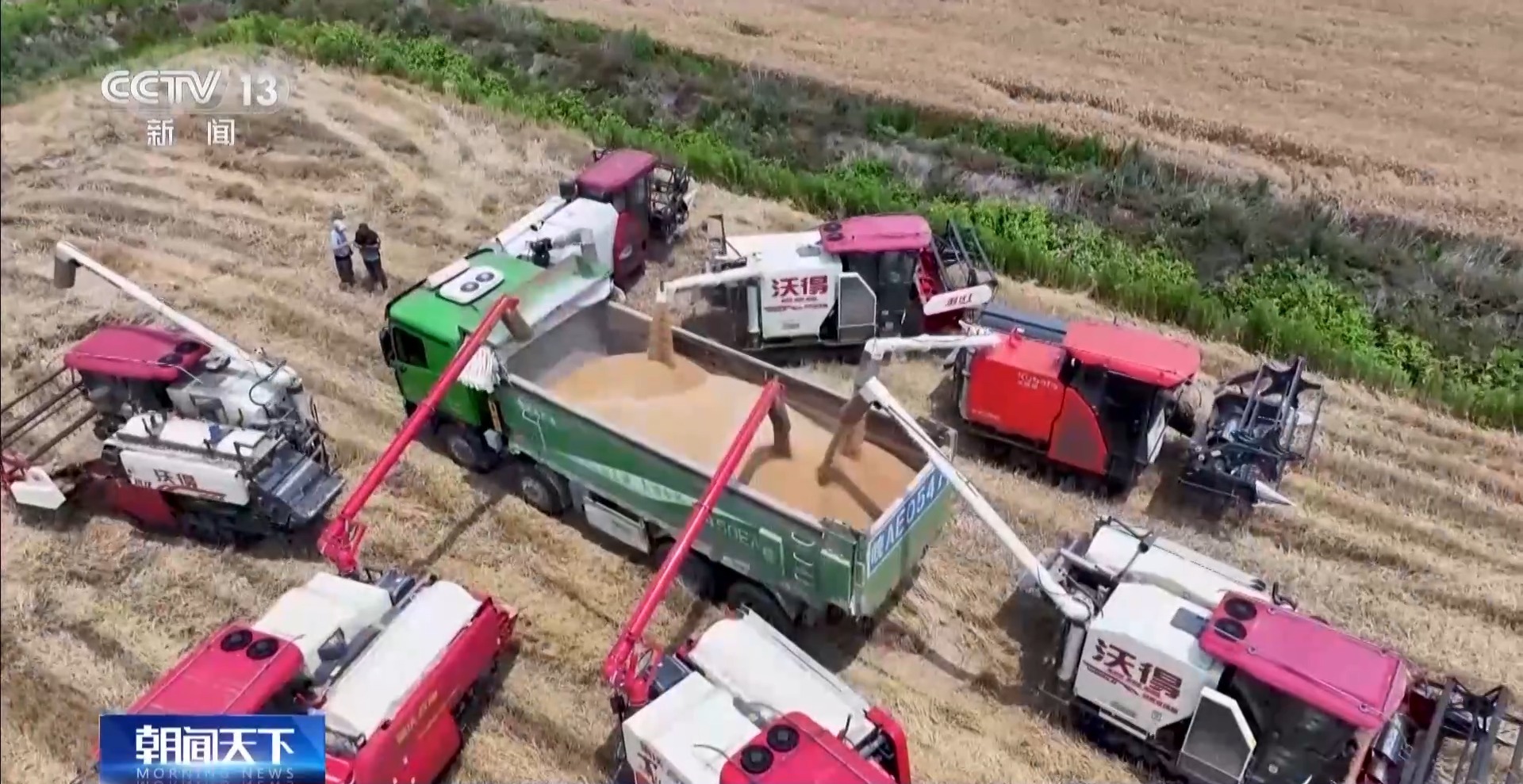 總臺(tái)央視記者 田琪永:我現(xiàn)在是在河南省駐馬店市,目前這里的1100多萬畝小麥正大面積集中成熟,當(dāng)?shù)亟M織了3萬多臺(tái)聯(lián)合收割機(jī)抓緊搶收,確保小麥?zhǔn)赵谶m收期。