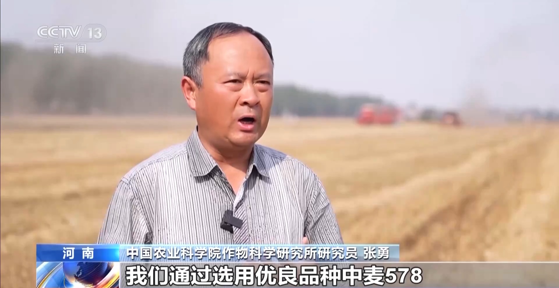 中國農(nóng)業(yè)科學(xué)院作物科學(xué)研究所研究員 張勇:我們通過選用優(yōu)良品種中麥578,通過適期的晚播,播前播后鎮(zhèn)壓,一噴三防,每畝比咱們的周邊地塊要增產(chǎn)200斤。