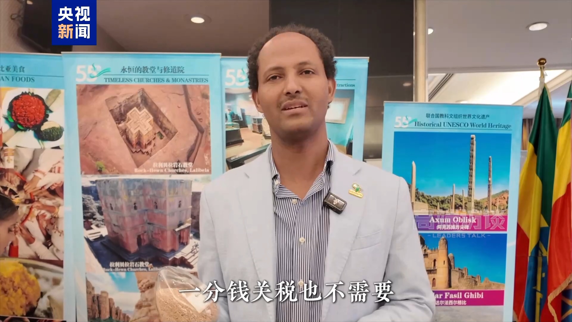 埃塞俄比亞駐華使館工作人員 內(nèi)比尤·博加勒:我們出口這些到中國(guó)市場(chǎng)不需要支付關(guān)稅,一分錢關(guān)稅也不需要。