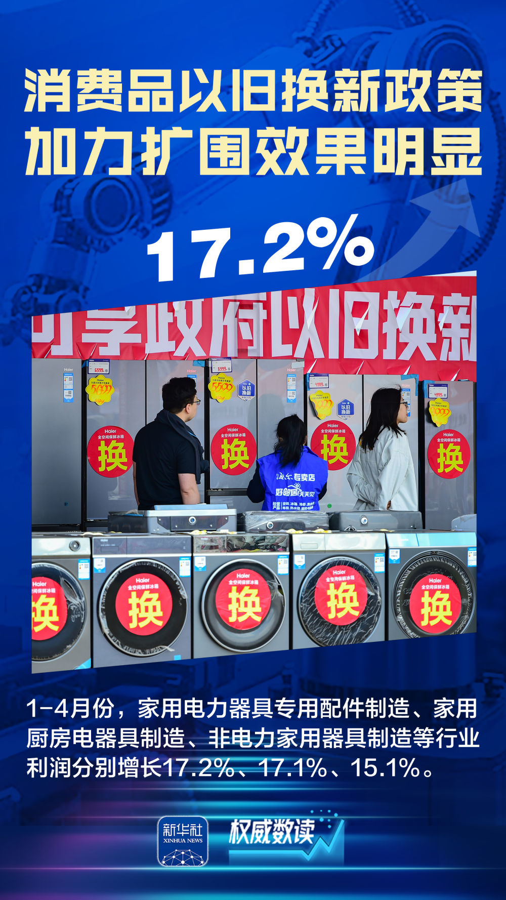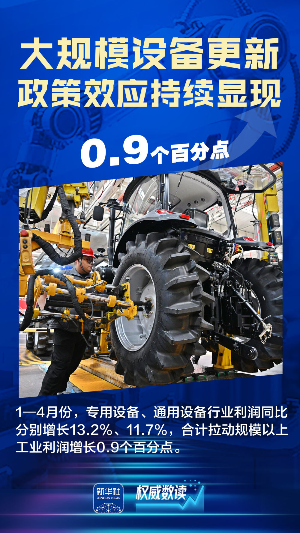國家統(tǒng)計(jì)局、工信部等部門最新發(fā)布的數(shù)據(jù)顯示,今年前4個(gè)月,我國工業(yè)企業(yè)利潤增長加快、工業(yè)投資保持增長、裝備制造業(yè)引領(lǐng)作用突出、“兩新”政策效應(yīng)持續(xù)顯現(xiàn)……一系列數(shù)據(jù),充分展現(xiàn)出我國工業(yè)經(jīng)濟(jì)的強(qiáng)大韌性和抗沖擊能力。