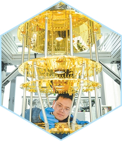 安徽合肥一家科技公司的技術人員在安裝稀釋制冷機的換熱組件。劉玉才攝(影像中國)