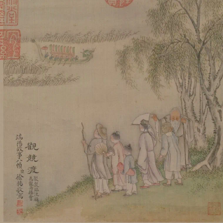 △《觀競(jìng)渡》,題:“聚眾臨流稱(chēng)為龍舟勝會(huì)。”