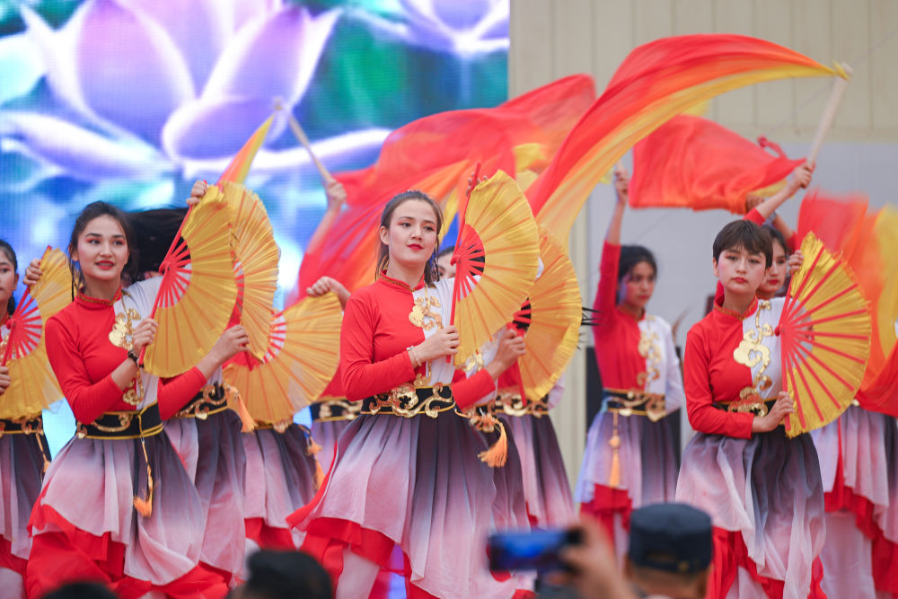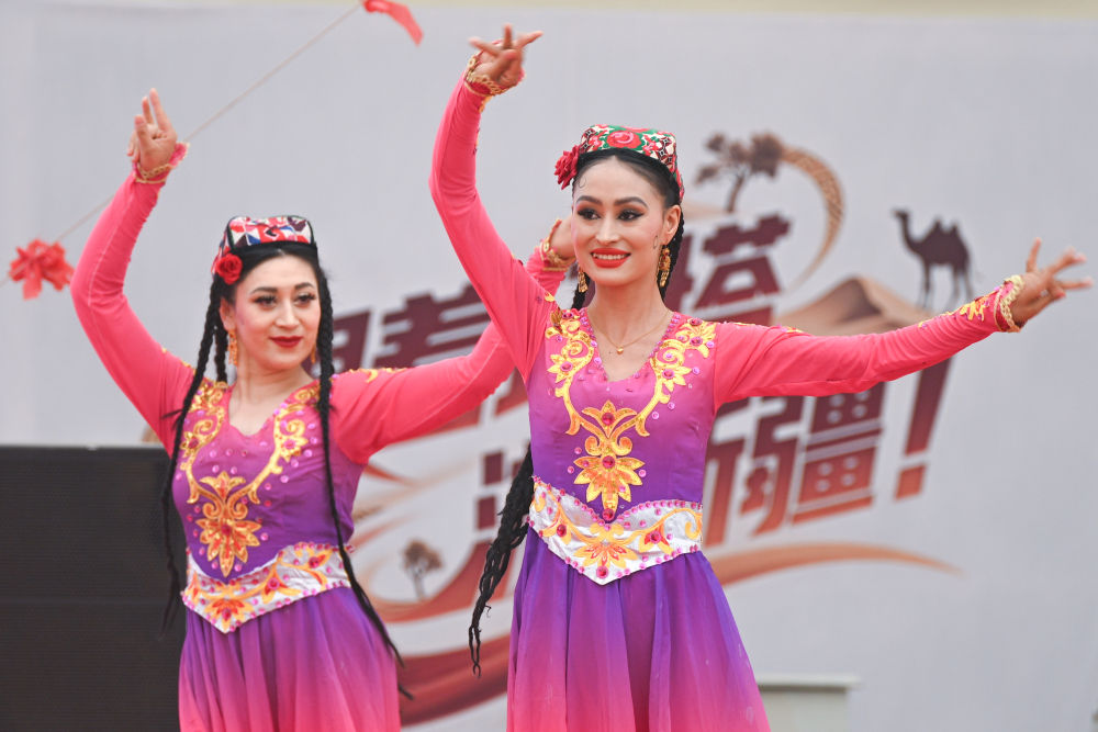 2025年5月28日,演員在2025中國環(huán)塔國際拉力賽新疆喀什地區(qū)葉城縣賽段迎賓晚會上表演。新華社記者 辛悅衛(wèi) 攝