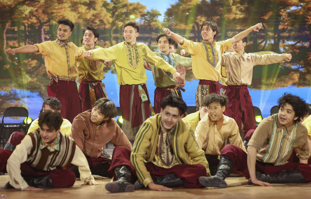 新疆藝術(shù)學(xué)院學(xué)生表演舞蹈《陽光下的麥蓋提》(2023年3月20日攝)。新華社記者 胡虎虎 攝