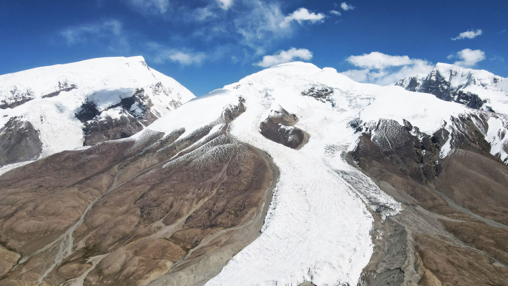 這是在新疆塔什庫爾干塔吉克自治縣慕士塔格冰川公園拍攝的冰川景觀(2023年9月6日攝,無人機照片)。新華社記者 金皓原 攝