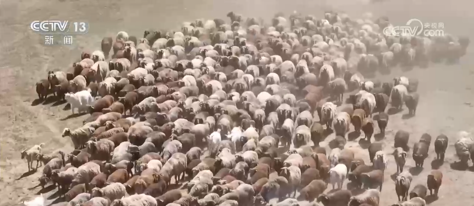 在新疆阿勒泰福??h的沙爾布拉克草原,當(dāng)?shù)啬撩翊┲恋奶厣?,帶著家?dāng),趕著牛羊,正在進(jìn)行轉(zhuǎn)場。今年有45萬頭的牛羊經(jīng)過沙爾布拉克草原千年牧道,轉(zhuǎn)場到水草豐美的夏牧場。