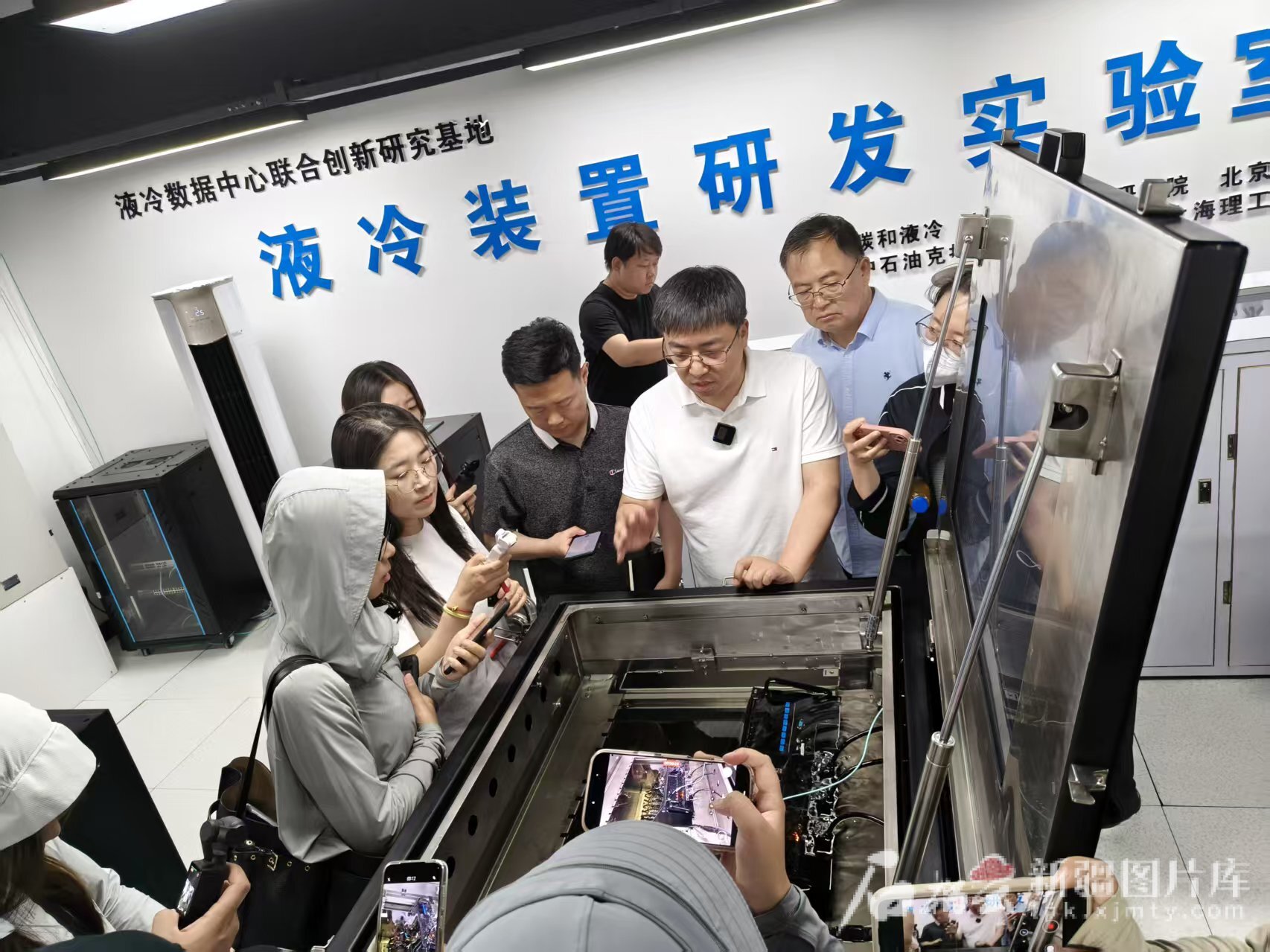 5月16日,在克拉瑪依云計(jì)算產(chǎn)業(yè)園區(qū)的碳和液冷數(shù)據(jù)中心,相關(guān)負(fù)責(zé)人在向記者介紹數(shù)據(jù)中心內(nèi)部能源循環(huán)利用原理。天山網(wǎng)-新疆日報(bào)記者 張治立 攝
