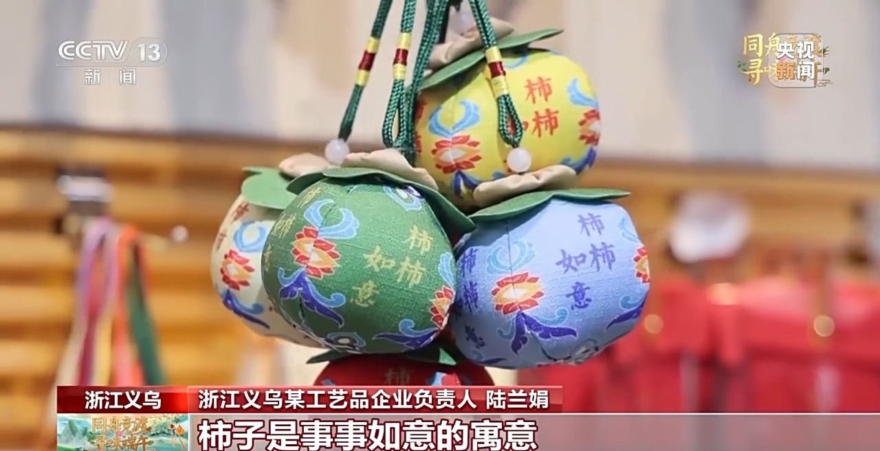 義烏某工藝品企業(yè)負責人 陸蘭娟:今年,在香囊的外觀設計上面,我們結(jié)合了中國傳統(tǒng)節(jié)日祝福的元素,設計了立體葫蘆、柿子等款式。像葫蘆的形狀有福祿的意思;柿子有事事如意的寓意,都是今年的“爆款”。