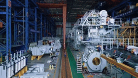 記者在位于青島西海岸新區(qū)的中船發(fā)動機生產(chǎn)車間內(nèi)看到,一臺四五層樓高的船舶發(fā)動機正在緊張安裝當中。