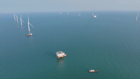 在青島天能重工股份有限公司,超大型海上風電塔筒設備整裝待發(fā),即將運往海上作業(yè)區(qū)進行安裝。公司董事長黃文峰表示,公司海上風電訂單量逐年增加,2024年訂單占比已近40%。
