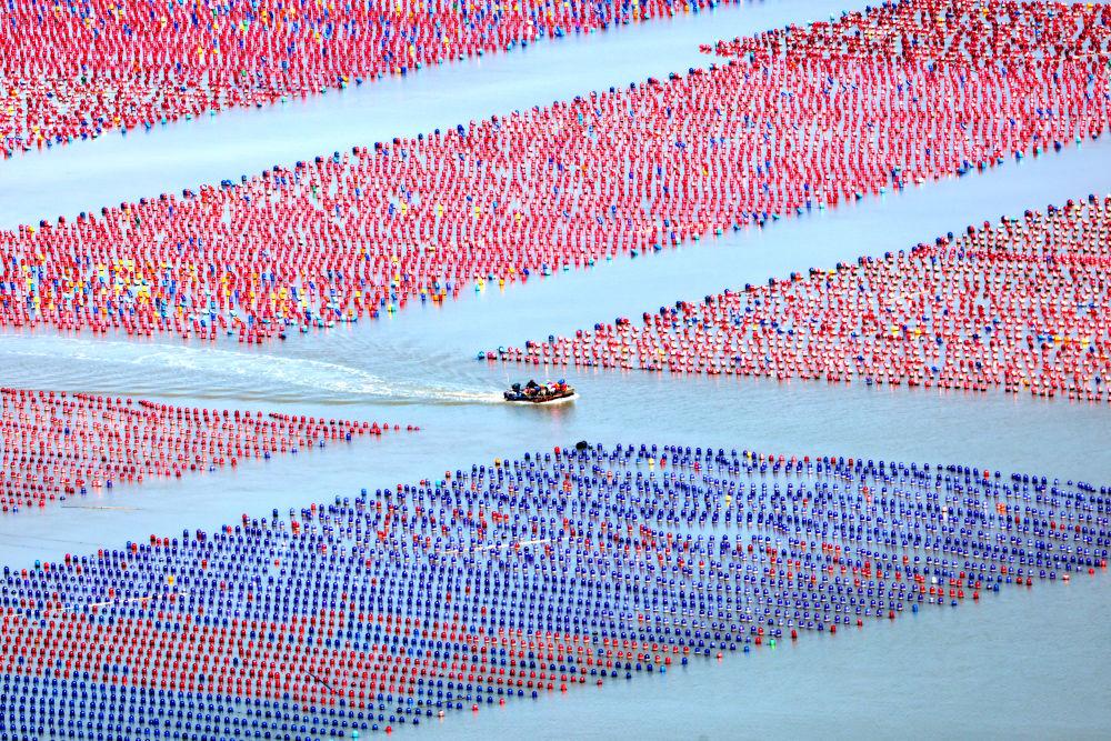 3月18日,福建省寧德市霞浦縣三沙鎮(zhèn)海域的海洋牧場,養(yǎng)殖工人在進行養(yǎng)殖作業(yè)。新華社發(fā)(王旺旺攝)