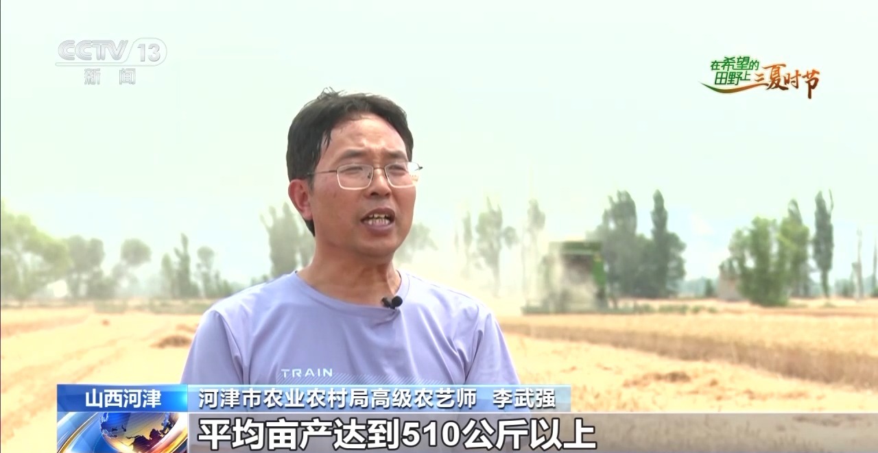 河津市農(nóng)業(yè)農(nóng)村局高級農(nóng)藝師 李武強:示范基地的小麥估計一周左右全部收完,平均畝產(chǎn)達到510公斤以上,較去年增產(chǎn)8%。下一步,將持續(xù)加大實用技術(shù)應用,努力實現(xiàn)‘收到手’到‘收得好’轉(zhuǎn)變。