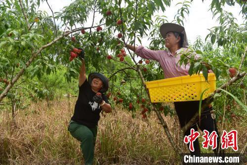 果農(nóng)在采摘桃子。中新網(wǎng)記者 張麗君 攝。