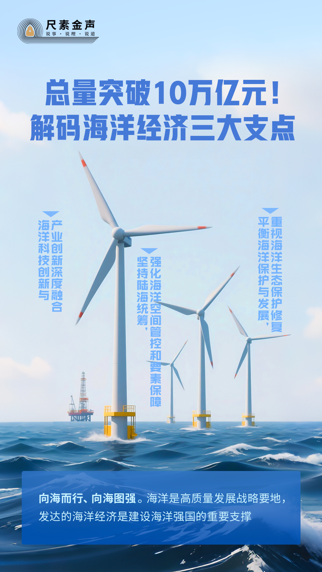 海風陣陣吹動白色風機,用“綠電”點亮萬家燈火;海水波濤翻滾、潮起潮落,將汩汩動能送至千家萬戶;“藍色糧倉”日漸充實,“中國飯碗”愈加豐富;深海深淵有數(shù)不盡的礦產(chǎn)、油氣和生物基因資源亟待開發(fā)……從單純的魚鹽之利、舟楫之便,到如今向大海要食物、要綠電、要淡水,海洋經(jīng)濟正成為拉動國民經(jīng)濟增長的重要引擎。
