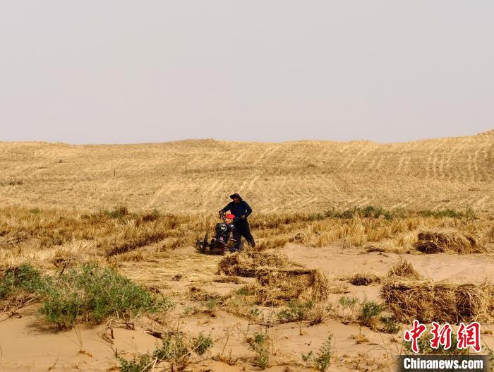 圖為治沙人付俊年熟練地操控著壓沙機(jī),穩(wěn)步前行。徐曉玲 攝