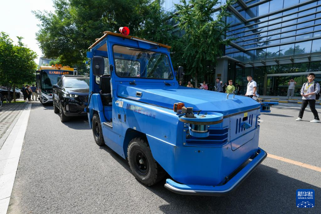 6月16日,在北京馭勢科技拍攝的一款用于機(jī)場物流作業(yè)的無人駕駛牽引車。新華社記者 鞠煥宗 攝