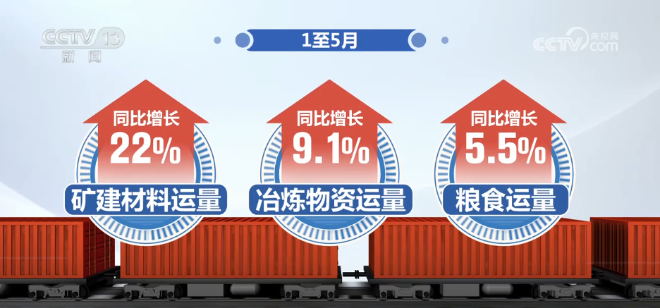 大宗物資運輸保障有力。新疆地區(qū)的煤炭運輸,晉南地區(qū)的疏港鐵礦石運輸?shù)戎攸c項目都開辟了綠色通道,確保高效送達(dá)。1至5月,國家鐵路發(fā)送煤炭8.45億噸,其中電煤5.75億噸,鐵路直供電廠存煤保持較高水平,礦建材料、冶煉物資、糧食運量同比分別增長22%、9.1%、5.5%。