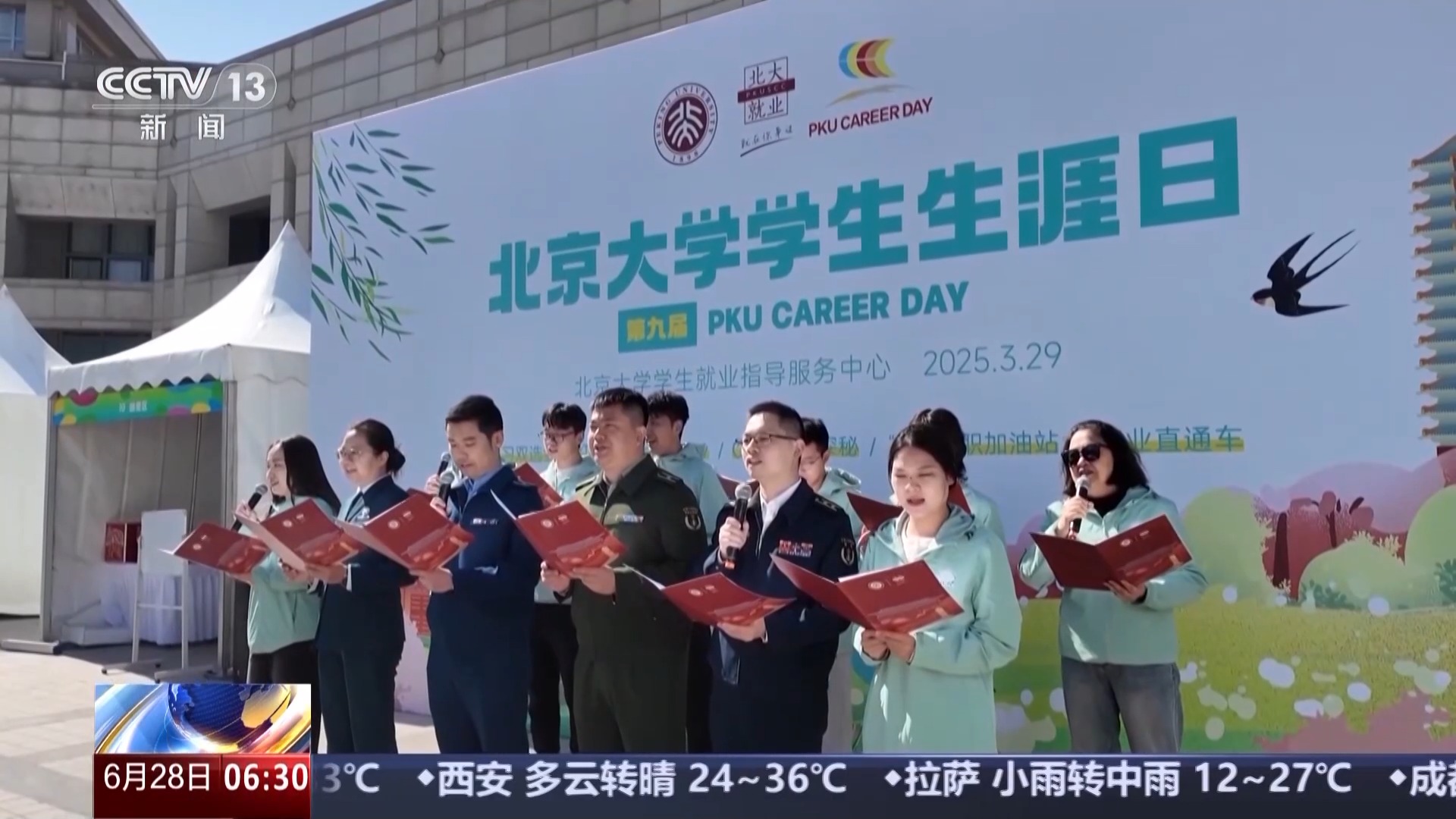 北京大學學生就業(yè)指導服務中心副主任 段銳:紅色代表培育家國情懷,鼓勵和引導同學們面向基層和西部地區(qū)就業(yè);綠色代表國防綠,號召同學們投身國防軍工領域、科技強軍領域;藍色號召同學們加入重點國際組織,參與人類命運共同體建設事業(yè)。希望引導同學們將個人發(fā)展融入國家發(fā)展之中。