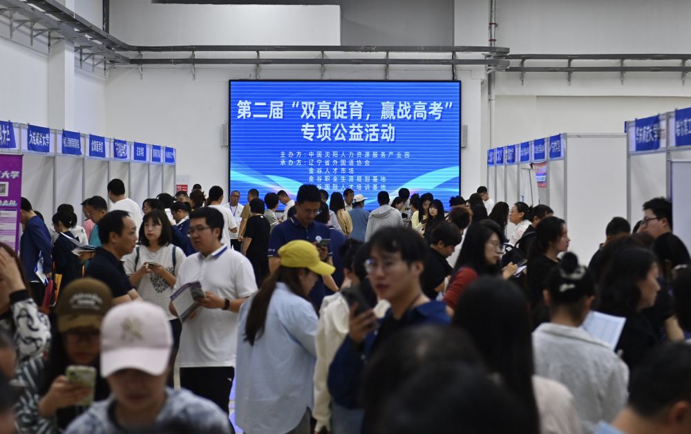 6月10日,第二屆“雙高促育,贏戰(zhàn)高考”專項(xiàng)公益活動(dòng)現(xiàn)場(chǎng),遼寧省內(nèi)外近八十所高校招生部門為考生提供志愿填報(bào)指導(dǎo)。 新華社記者 吳青昊 攝