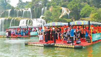 崇左市大新縣西與越南接壤。近年來(lái),大新縣充分發(fā)揮跨境旅游合作區(qū)的“磁吸”效應(yīng),以文化旅游加強(qiáng)中越人文交流,開辟中越文明交流互鑒新路徑。大新縣舉辦中越德天(板約)瀑布跨境旅游合作區(qū)嘉年華、“三月三”系列活動(dòng)等,推出壯族風(fēng)情舞蹈、中越美食長(zhǎng)桌宴、中越界河山歌擂臺(tái)賽、中越傳統(tǒng)手工藝品集市、中越名特優(yōu)商品促銷活動(dòng)等,讓文化潮聲與德天瀑聲在邊境線上交“響”呼應(yīng)。