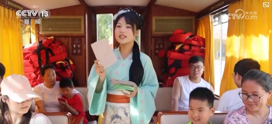 在河南開封,游客能坐船體驗“宋朝人的一天”,船上設(shè)有互動詩詞小游戲,市內(nèi)的八大景區(qū)通過汴河水道“串珠成鏈”,吸引游客參與其中。
