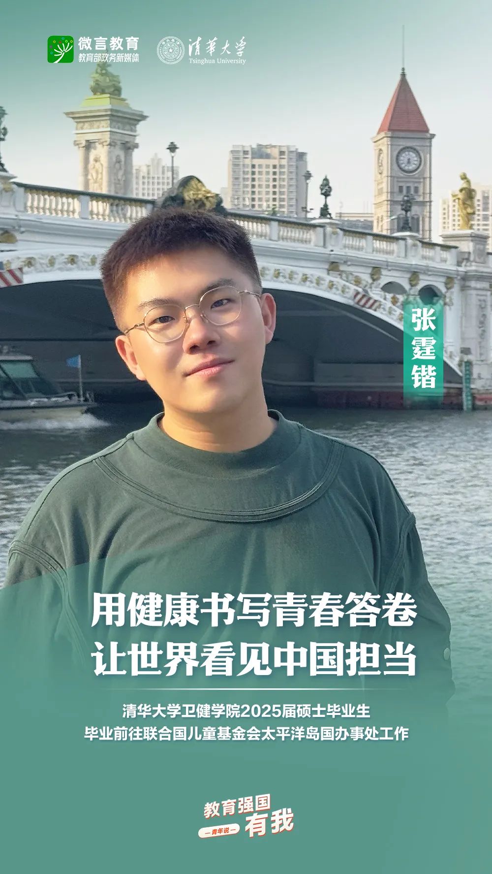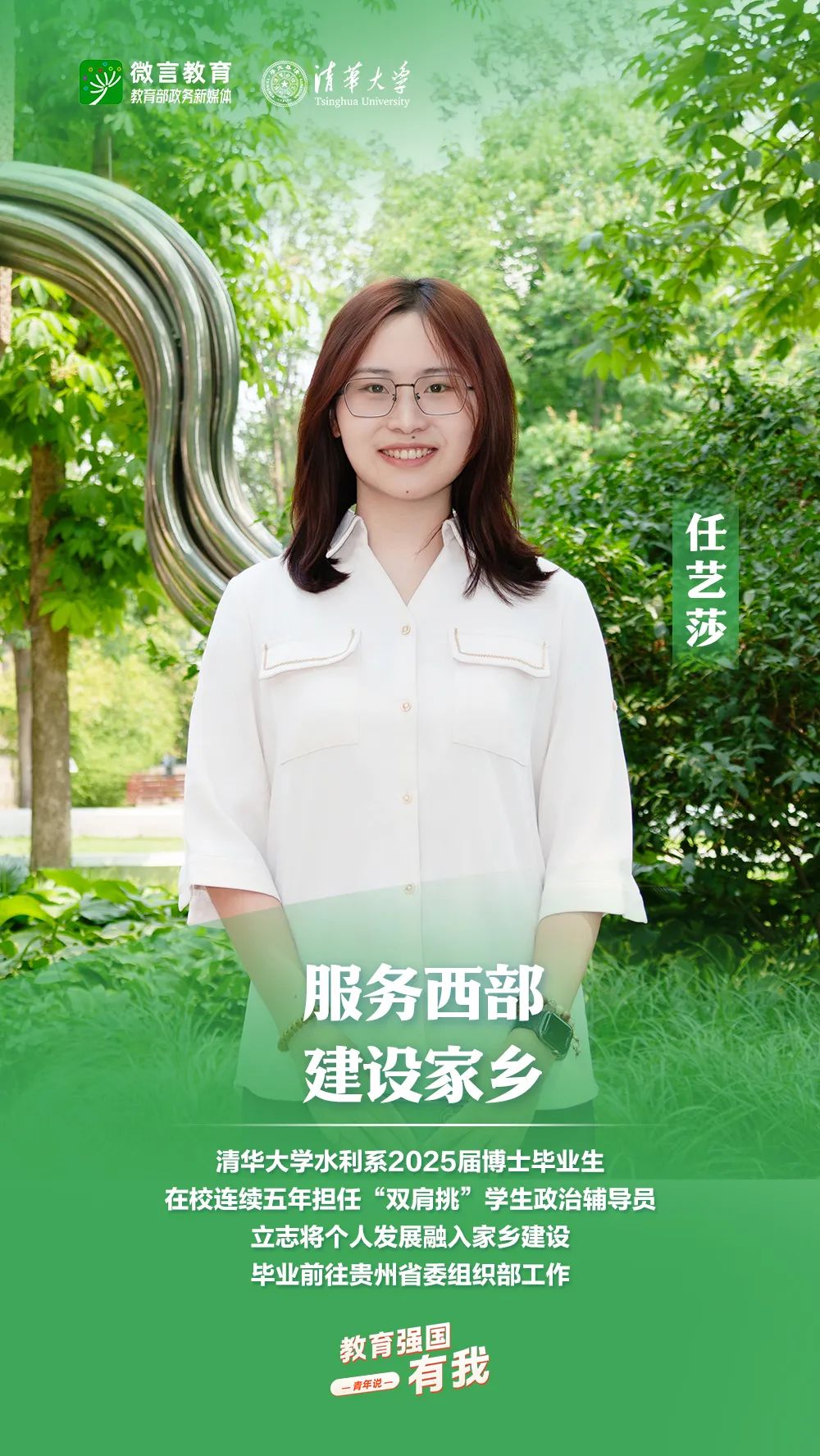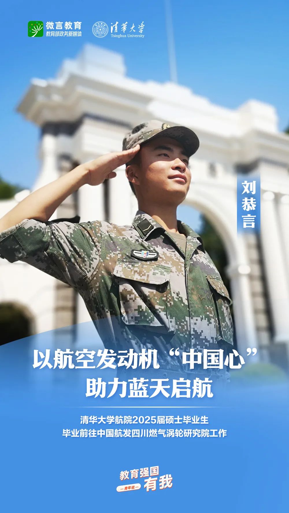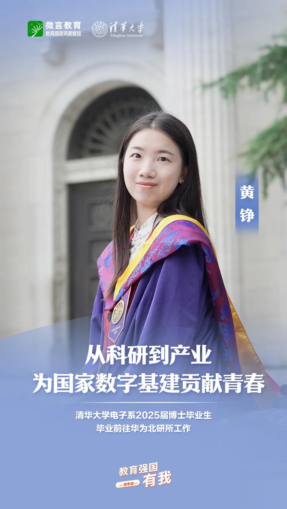 習(xí)近平總書記強(qiáng)調(diào),希望廣大青年堅(jiān)定理想信念,厚植家國(guó)情懷,練就過硬本領(lǐng),發(fā)揚(yáng)奮斗精神,到祖國(guó)和人民最需要的地方發(fā)光發(fā)熱,為中國(guó)式現(xiàn)代化建設(shè)貢獻(xiàn)青春力量。教育強(qiáng)國(guó)建設(shè),青年何為?教育部政務(wù)新媒體推出“教育強(qiáng)國(guó),有我!”網(wǎng)絡(luò)主題宣傳活動(dòng)之“青年說(報(bào)國(guó)篇)”系列,展現(xiàn)青年學(xué)子將個(gè)人理想融入國(guó)家發(fā)展的青春擔(dān)當(dāng)。今天,跟教育小微通過1個(gè)視頻和1組海報(bào),一起來看清華大學(xué)學(xué)子的畢業(yè)選擇——