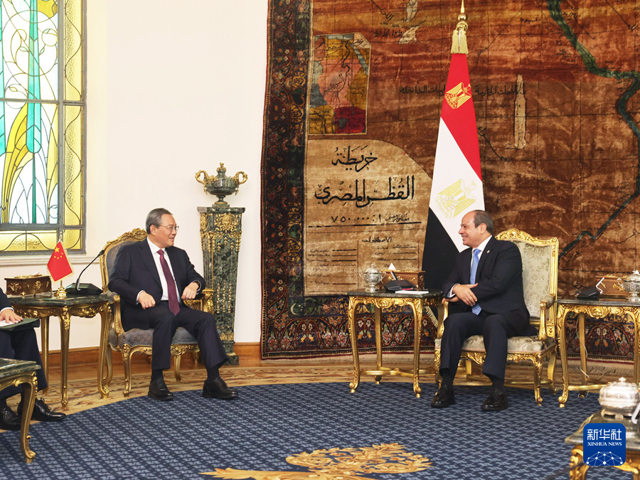 當?shù)貢r間7月10日,國務院總理李強在開羅會見埃及總統(tǒng)塞西。