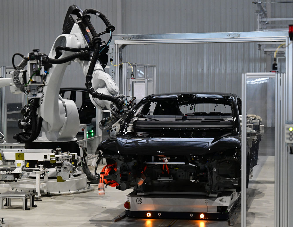 7月1日在合肥市新橋智能電動(dòng)汽車產(chǎn)業(yè)園蔚來第二工廠拍攝的新能源汽車生產(chǎn)線。新華社記者周牧攝
