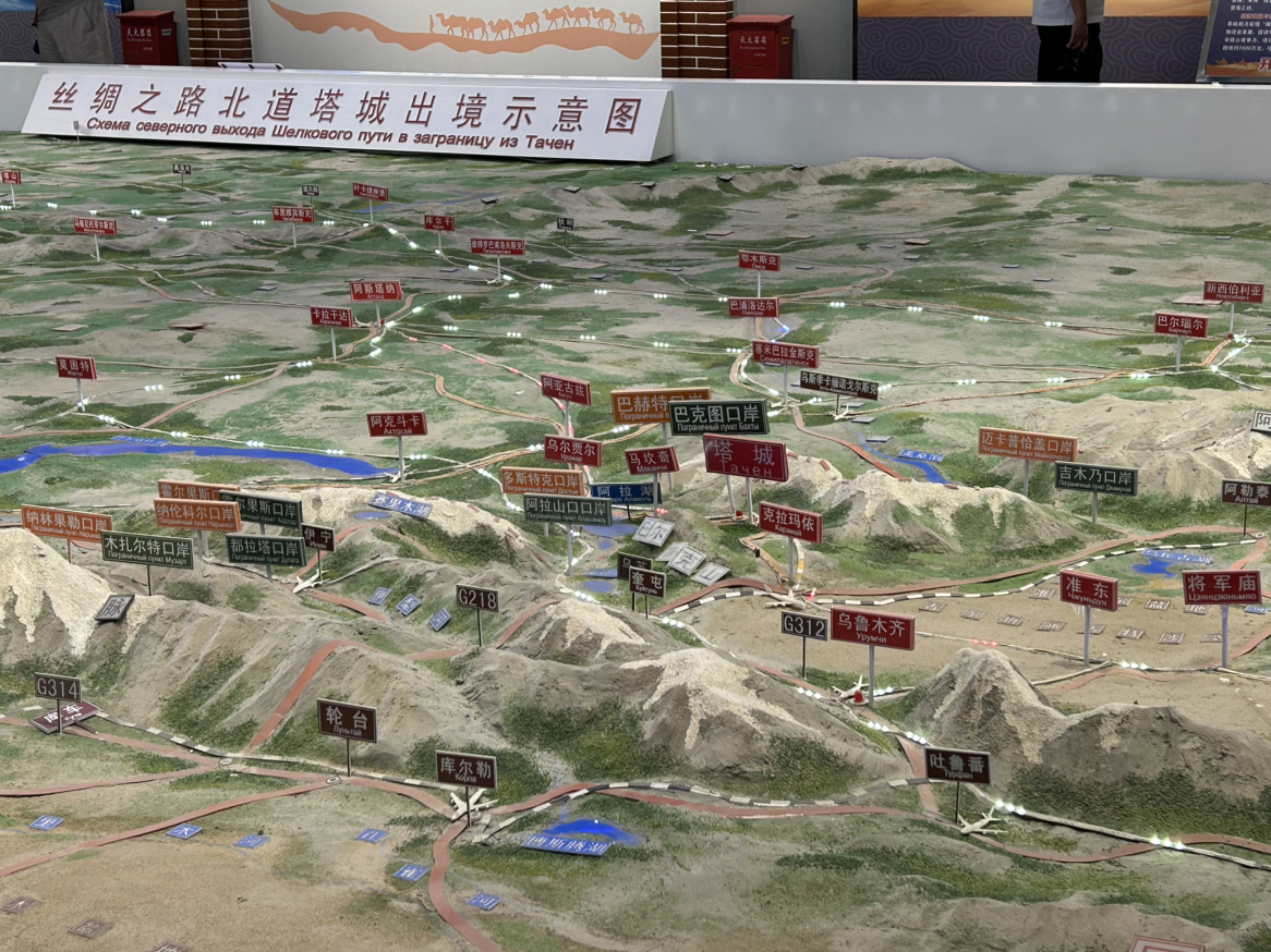 在巴克圖口岸文化展示館,解說(shuō)員趙倩指著一張乾隆年間的易貨貿(mào)易圖介紹:“從1764年民間駝隊(duì)往來(lái),到1854年正式通商,這里始終是亞歐大陸重要的貿(mào)易走廊?!别^內(nèi)沙盤(pán)清晰呈現(xiàn)“一核、兩廊、三區(qū)”新布局,2025年上半年數(shù)據(jù)顯示,口岸出入境人員同比增長(zhǎng)167.82%,通關(guān)時(shí)間較往年縮短40%。“現(xiàn)在的司機(jī)用手機(jī)APP就能完成申報(bào),邊民互市‘整進(jìn)整出’模式讓貿(mào)易更高效?!壁w倩說(shuō)道。