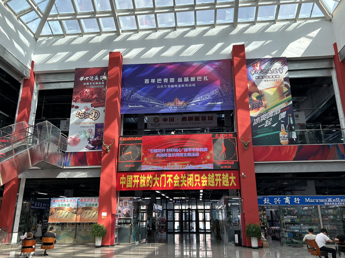 絲路文化商品城坐落于巴克圖口岸,是一座集批發(fā)零售、商品展示、商貿(mào)洽談、跨境電商、金融結(jié)算等五大功能為一體的現(xiàn)代化服務(wù)平臺(tái)。走進(jìn)商品城,仿佛置身于一個(gè)國(guó)際商品的海洋,來(lái)自哈薩克斯坦及周邊18國(guó)的進(jìn)口食品、日用品、化妝品等各類商品琳瑯滿目,應(yīng)有盡有,吸引著各地消費(fèi)者紛至沓來(lái)。