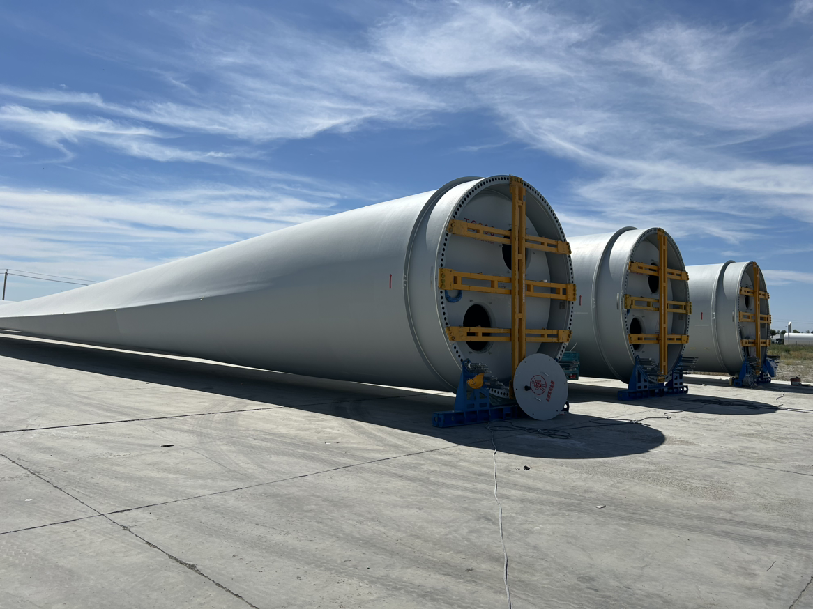 距口岸8公里的塔城重點(diǎn)開(kāi)發(fā)開(kāi)放試驗(yàn)區(qū)建設(shè)現(xiàn)場(chǎng),三一風(fēng)電的巨型葉片正等待出口?!拔覀兩a(chǎn)的葉片單只長(zhǎng)度達(dá)112米,重達(dá)41噸,平均每80個(gè)工時(shí)可以生產(chǎn)一只,單只的成本價(jià)在120萬(wàn)左右。目前,我們公司接收著來(lái)自世界各地的訂單” ,塔城風(fēng)電設(shè)備有限公司行政事務(wù)專員阿斯哈爾 阿根三一表示。