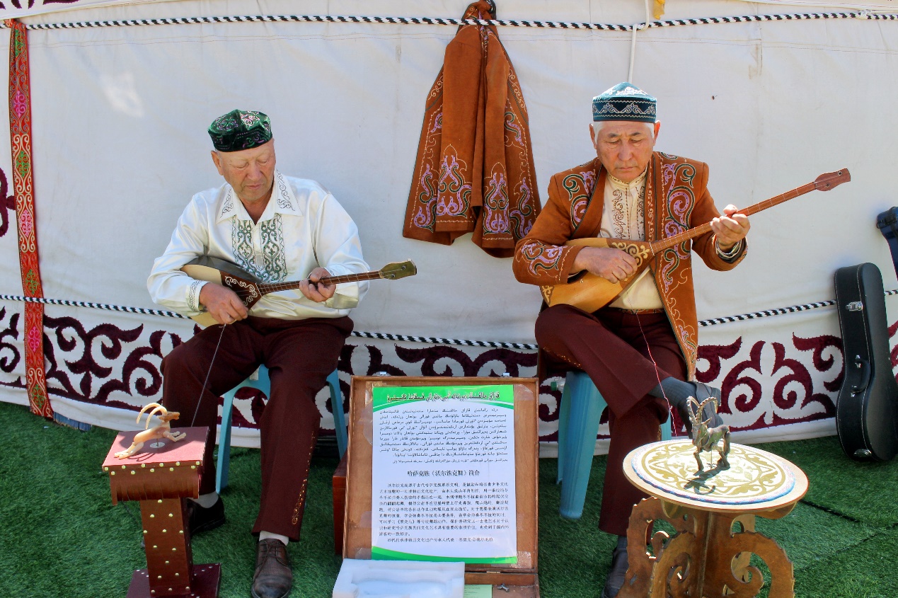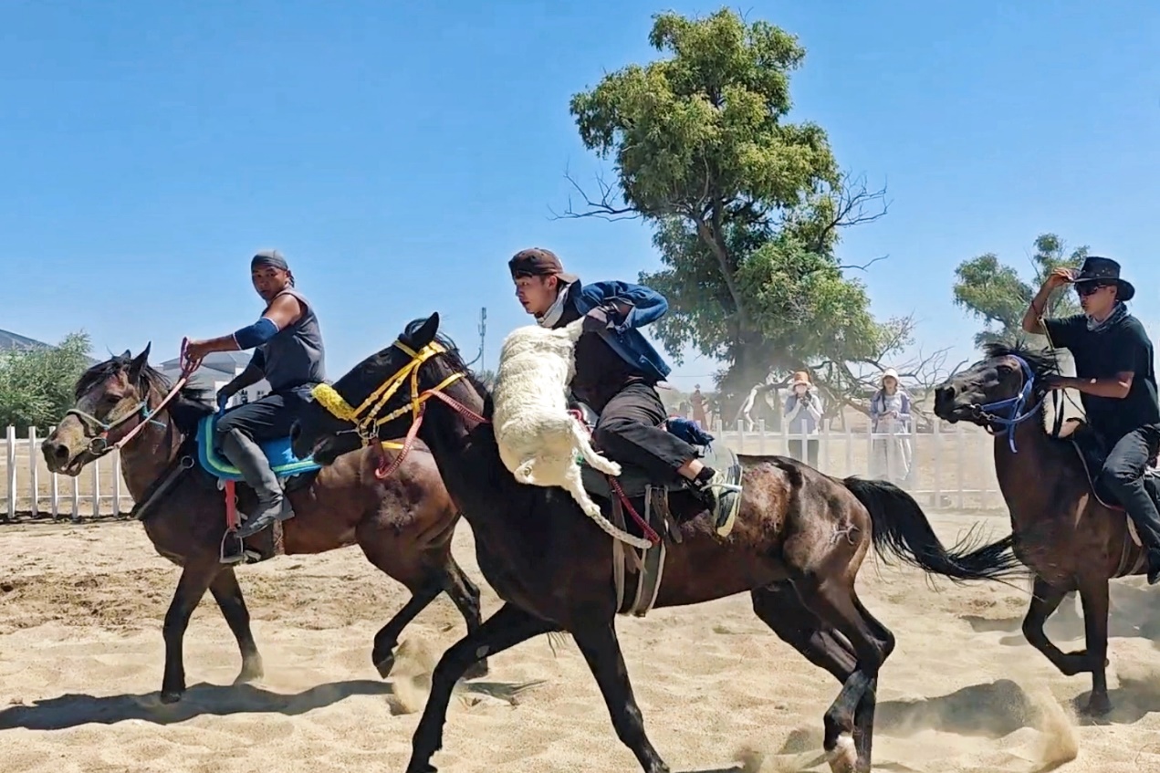 彩虹布拉克的氈房外有非遺沃爾鐵克的技藝表演,采訪團被“會跳舞的小山羊”所吸引。非遺沃爾鐵克代表性傳承人賽里克·合德爾毛拉介紹到,“沃爾鐵克”在哈薩克語中是“領(lǐng)頭羊”的意思,哈薩克族在與自然交往的過程中度過游牧時代,“沃爾鐵克”不僅是小孩子解悶的兒時玩具,也是代代相傳的精神文明。伴隨著冬不拉的彈奏,撥弦的手牽動連著“小山羊”的線,控制著它的跳躍姿勢,模仿巖羊在懸崖峭壁上行走奔跑。