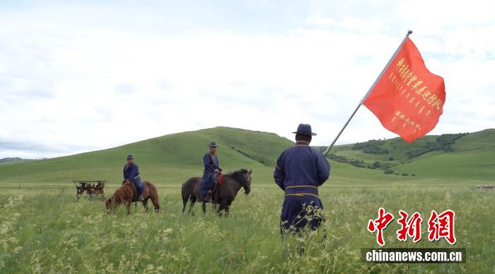 盛夏時節(jié),內蒙古自治區(qū)興安盟烏蘭毛都大草原碧空如洗,微風沁人?!笆窕ㄩ_北疆紅 籽籽同心家國情”網絡主題宣傳活動媒體團一行剛踏入草地,馬兒的嘶鳴聲以及旗幟在風中飄揚的聲音便從不遠處傳來,科右前旗守望草原巡防隊滿族屯分隊的隊員們正微笑著向大家招手。