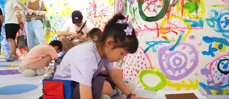 作為中法文化之春交流項(xiàng)目之一,法國創(chuàng)意啟蒙藝術(shù)大師埃爾維·杜萊的中國大陸首展《亂畫游樂場(chǎng)》正在京舉行。步入展覽,“點(diǎn)、線、花”等藝術(shù)元素被轉(zhuǎn)化為沉浸式互動(dòng)場(chǎng)景。在“點(diǎn)點(diǎn)點(diǎn)”區(qū),孩子們一起用紅黃藍(lán)圓點(diǎn)共創(chuàng);“線”的區(qū)域,畫滿線條的紙張可以任意撕開,再重新拼貼出新的創(chuàng)意;可以涂鴉的藝術(shù)裝置,大人和小孩一起即興創(chuàng)作;光影展區(qū),孩子通過和光影動(dòng)畫互動(dòng),一起感知色彩的變化。