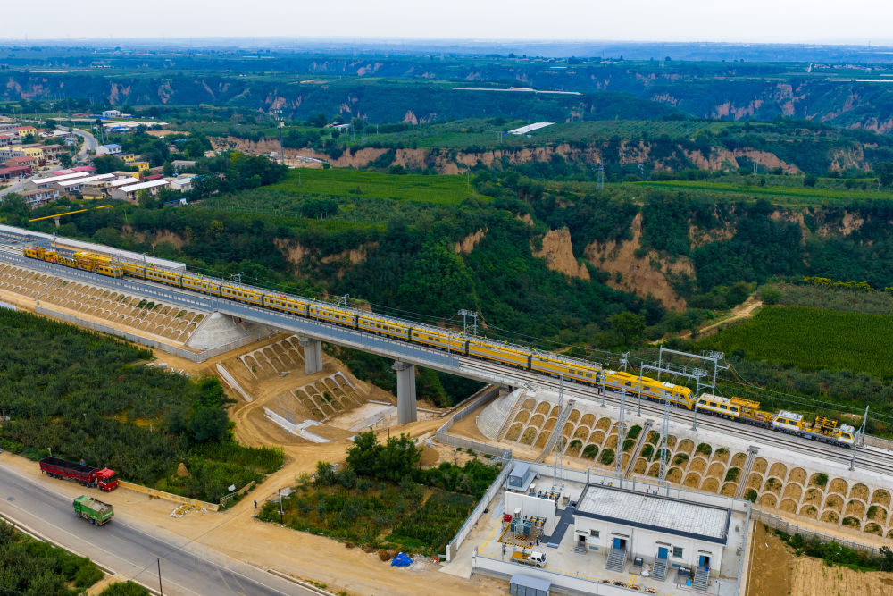 西延高鐵正在有序推進電氣化設備的精調。(中國鐵路西安局集團有限公司供圖)