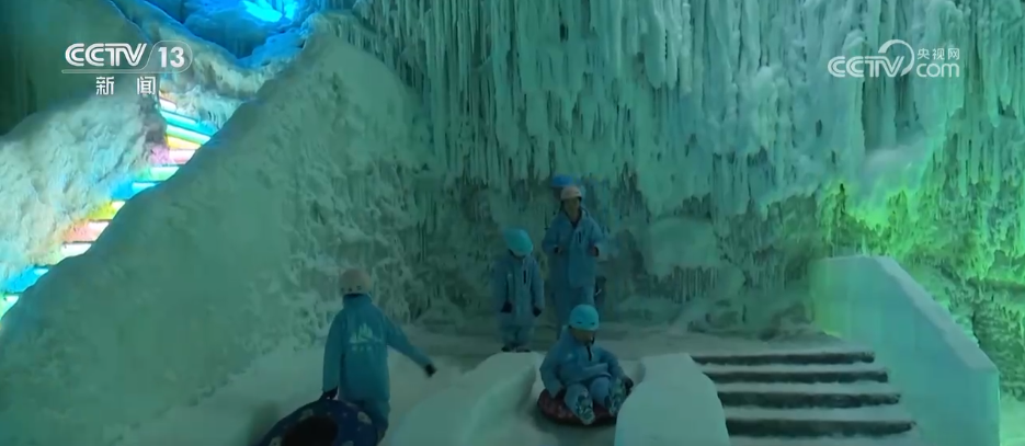 在淮南市焦崗湖畔的“冰簾洞天”景區(qū),游客們仿佛“穿越”到了冬天。1.5公里長的游玩線路涵蓋了冰上漂流、冰上保齡球等項(xiàng)目,大人、孩子們穿上厚厚的衣服,感受速度與激情。