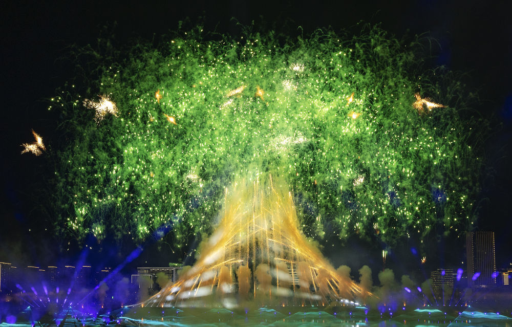 這是8月7日拍攝的開(kāi)幕式上的焰火表演。新華社記者 陳益宸 攝