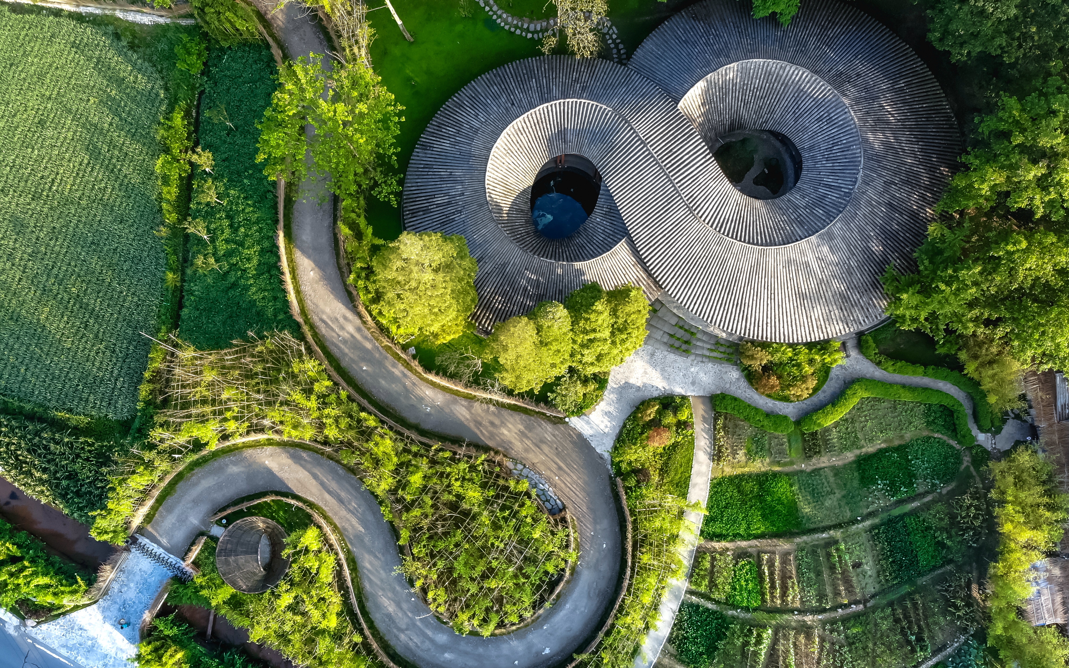 日暮時分,竹藝村的地標(biāo)性建筑“竹里”被覆上一層金輝。從空中俯瞰這個坐落在竹藝村的“網(wǎng)紅”建筑,形狀如同數(shù)學(xué)符號中代表無窮的“∞”。竹文化無窮,竹編路無限,讓人不禁期待竹藝村更加精彩的未來……