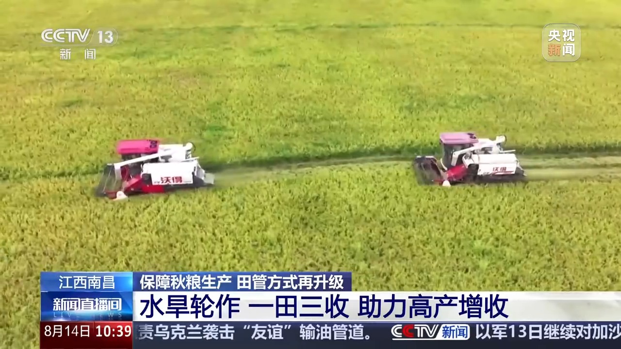 在江西南昌聯(lián)圩鎮(zhèn),一茬茬飽滿的稻穗被迅速收割、脫粒,裝入運(yùn)輸車輛。而在收割機(jī)作業(yè)的田塊旁,翻耕起壟機(jī)正加緊作業(yè),農(nóng)戶們忙著清溝除雜、整理田地,為播種優(yōu)質(zhì)高產(chǎn)大豆做足準(zhǔn)備。今年當(dāng)?shù)夭捎?strong>水旱輪作、一田三收的種植方式,春季種水稻,初秋收完水稻后搶種大豆,秋末大豆收獲后緊接著種植耐寒蔬菜或油菜,三季作物茬口緊密銜接,全年無閑田。同時(shí),通過推廣良種、測土配方施肥等技術(shù),確保每種作物都能優(yōu)質(zhì)高產(chǎn)。