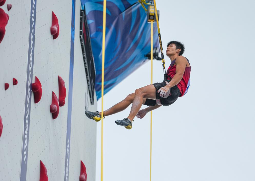 速度攀巖雙人接力賽首次正式亮相國際大賽。男子決賽中,中國組合龍見國和儲(chǔ)守宏以10秒26的成績力壓美國隊(duì)奪冠。而銅牌賽中的美國組合塞繆爾·沃森/扎卡里·哈默以創(chuàng)世界紀(jì)錄的10秒06佳績摘銅。