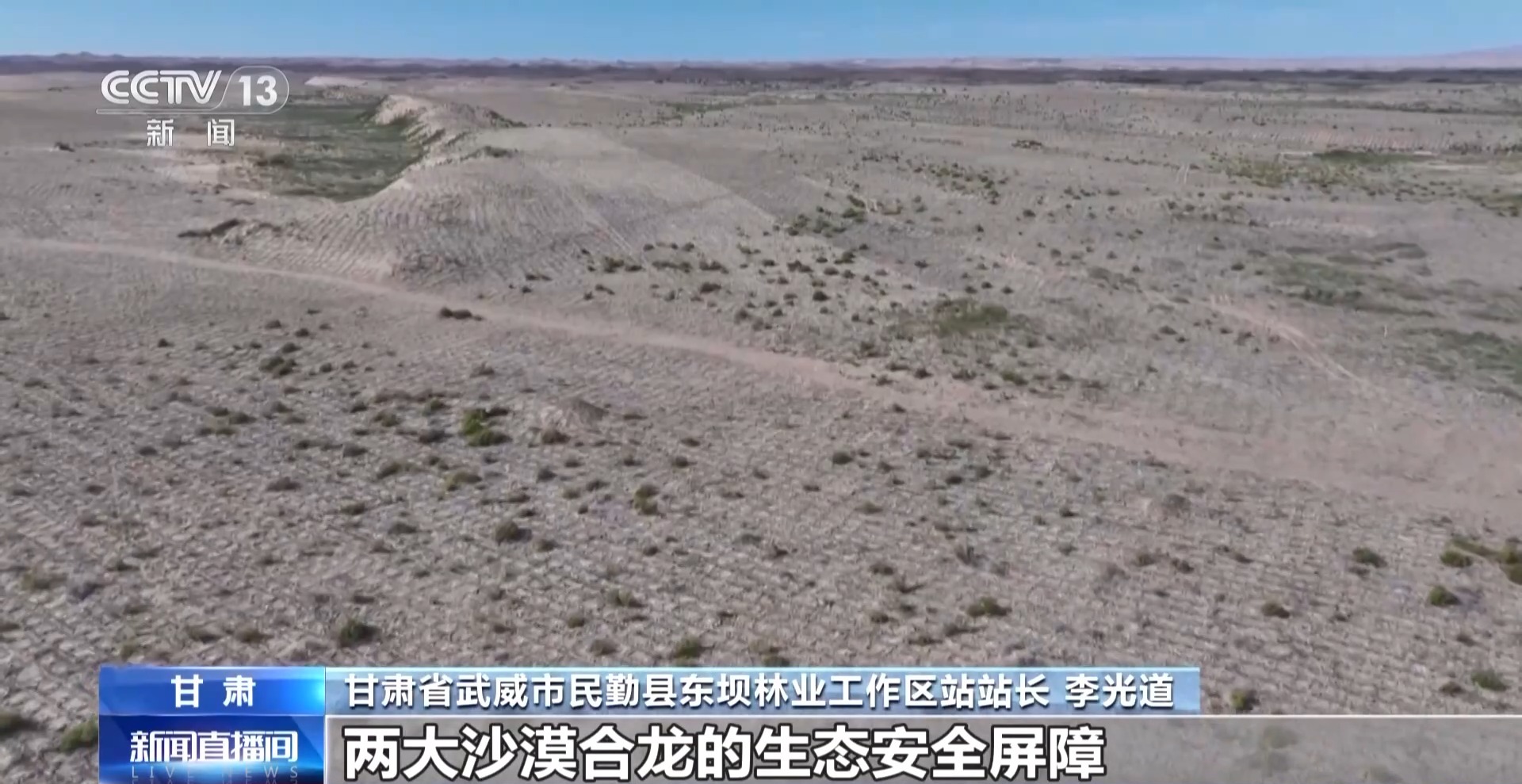 甘肅省武威市民勤縣林草局副局長 姜莉玲:截至目前,全縣累計(jì)完成工程固沙130萬畝,封沙育林草325萬畝,人工造林保存面積261萬畝。