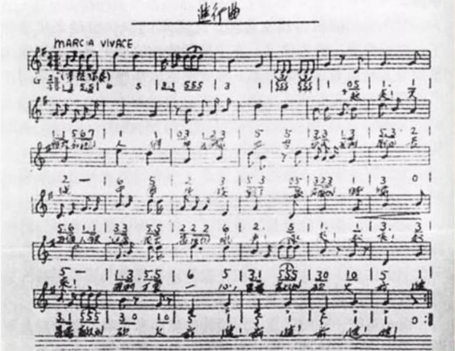 聶耳譜寫的《義勇軍進(jìn)行曲》手稿